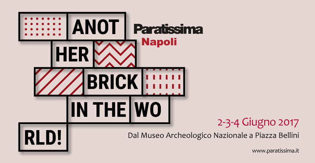 Dopo Torino, Skopje, Lisbona, Cagliari, dal 2 al 4 giugno 2017, la prima edizione di "Paratissima Napoli …another brick in the WORLD!" invaderà spazi e ambiti urbani in un percorso che si snoda dalla piazza del MANN - Museo Archeologico Nazionale, lungo la Galleria Principe di Napoli e via Broggia, passando per via Bellini, vico Spadaro e via Conte di Ruvo, via Costantinopoli, fino a Piazza Bellini.